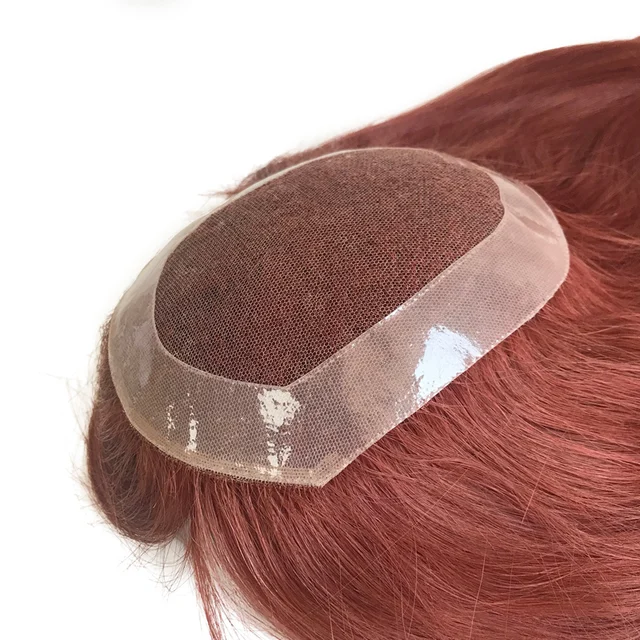 Premium Red Color Fine Swiss Lace PU Edge Natural Virgin Human Hair Piece Women Topper