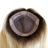 Fine Mono Lace Ombre Color Natural Virgin Human Hair Piece Women Topper With Clip in